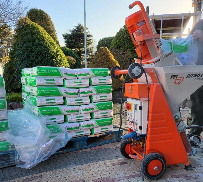 De bekende Quartzline egalines Cementitious cementgebonden 2-20 mm en 5-40 mm, de Alpha gipsgebonden 2-20 mm en 5-40 mm en de vezel versterkte F-varianten zijn stuk voor stuk uitstekend te verpompen.
