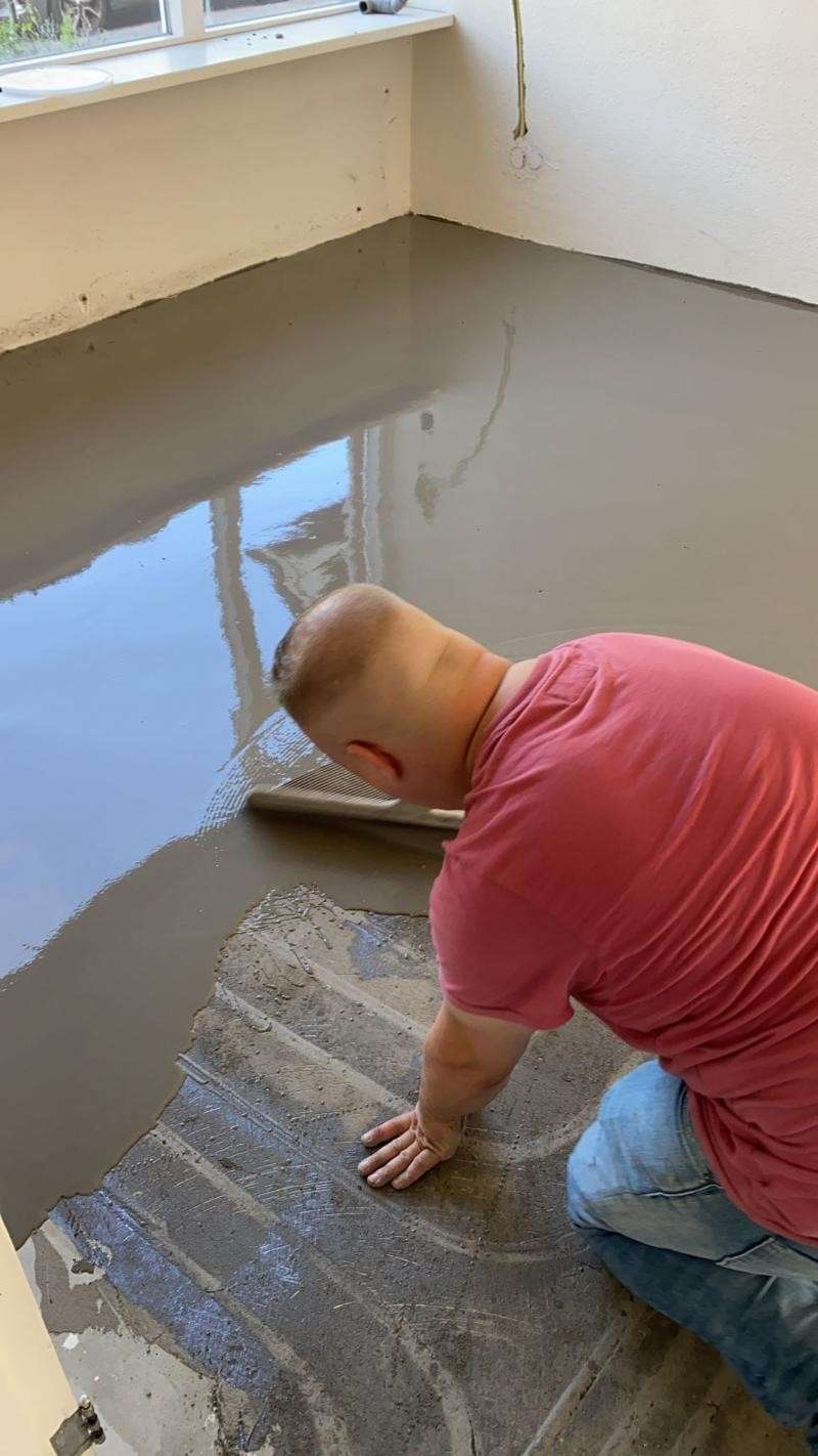 Woninginrichting De Koning BV uit Rotterdam heeft onlangs in een woning te Rotterdam de sleuven van de aangelegde vloerverwarming dichtgesmeerd met Quartzline Cementitious MRP reparatiemortel.
