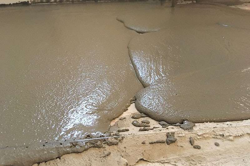 Een kant-en-klare vloeibare cementgebonden mortel voor het maken van dekvloeren.