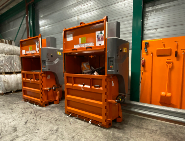 Quartzline heeft vier 5030 Orwak afvalpersen in gebruik voor het compacteren van afval en twee 3420 Orwak balenpersen voor het compacteren van de schone materialen.
