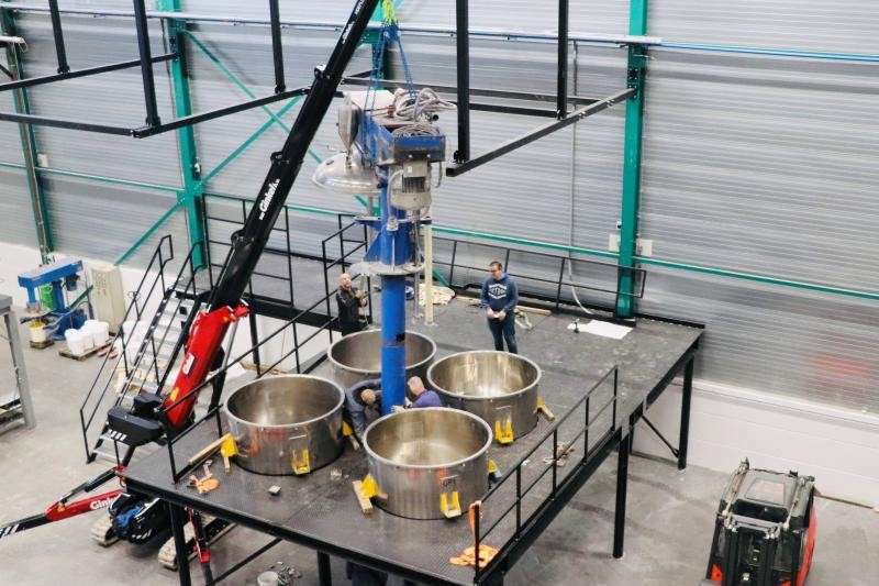 Quartzline, producent van gietvloeren en coatings, te Dordrecht neemt binnenkort een nieuw mengbordes in gebruik. Dit volledig geautomatiseerde mengbordes bestaat uit een disolver en vier mengkuipen in klaverblad opstelling. Het mengbordes heeft een capaciteit van vijf tons productie batchen van gietvloer of coating.